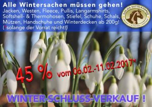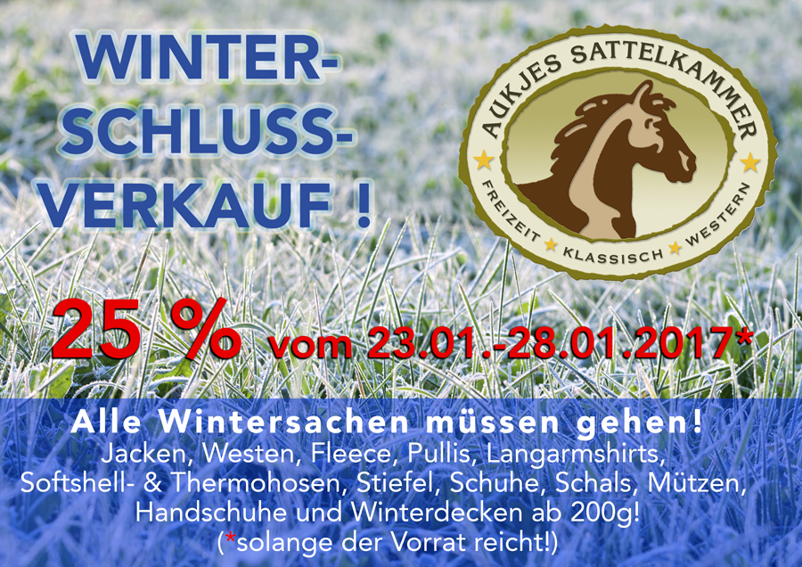 Am Montag, den 2.Januar 2017 und Dienstag, den 3.Januar 2017 haben wir aufgrund der Inventur komplett geschlossen.